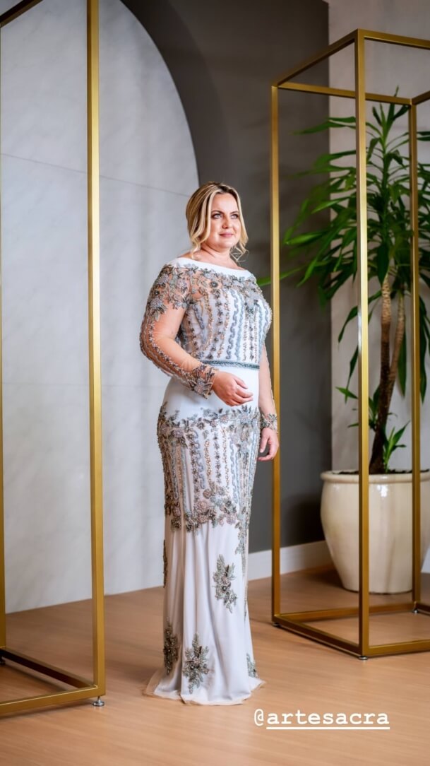 Premium Manga Longa com Detalhes em Bordado Manual em Flores